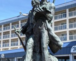 I have read Undaunted Courage and watched my share of movies and documentaries, so I was super excited to get some more historical on-the-ground context. Unfortunately, our first stop was Seaside, the Wally World of the Oregon Coast and ugly American/Euro-trash tourist bus must go. It was harsh. A carnival of crap trinkets and crap food and every form of general crap that could be sold. Allegedly, there was a statue of L&C that I wanted to see, but as with every virtual reality Disney, Studio City, Vegas, Funderland kind of altering of the senses, this statue claimed to be the “End of the Trail”, which, of course, it was not. Making haste out of this realm, we went to the nearby L&C Salt Cairn Historic Monument. It is a weird site surrounded by homes in a modern neighborhood is this 30’x30’ wrought iron fenced off display of a 4’x10’ pile of rocks with 5 copper pots on top.
