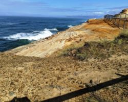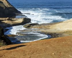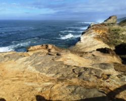 A little further South we picked up 101, and it felt like we needed to head south to meet up with the northernmost point of our last trip to connect the dots. We passed through Lincoln City with its Devils Lake which I wished we had more time to explore. We stopped at Devils Punch Bowl and look a little walk out there. We stopped at Yaquina Head Lighthouse to check it out. Our visit was brief, however, for not only was it closed, the flies were abundant and aggressive. My hunch was all the bird poop on the rocks kept them fed and healthy and multiplying.