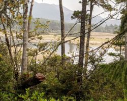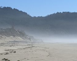 We took a nice couple mile loop trail through forest, and meadow, and finally along Sand Lake, another of those Oregon coastal oddities; uncertain if it is bay, river, marsh, wetland, estuary, all completely impacted by the tides, they are of immense beauty and tranquility, especially in the calm, cool, misty early morning. Despite not knowing if we were on a trail, or on the right path most of the time, we found our way and had a great morning stroll.