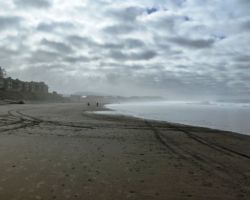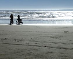 This was one of the most spectacular beaches I have ever been on. It was wide, and smooth, and flat, and clean; almost no shells or rocks, or pebbles, or stick. Very few driftwood logs had washed up and they were neatly pressed against the dune. The waves were so gently and calm; the waves were soothing in their regular beat. We couldn’t help but head down the long stretch for some time. We saw maybe 10 people at various times; mostly in 1’s, and 2’s, with one family of 4 on electric bikes.