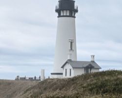 We talked and laughed with her for quite a while and in so doing, learned this was the only lighthouse on the Oregon coast that is made of wood, and that has the living quarters and the light in the same building. Next to it stood an electronic beacon tower that we learned is continuously staffed by the US Coast Guard, the modern day version of our antiquated lighthouse system, although not a whole lot different considering a couple people are still sitting up in a tower on a bluff staring out to sea.
