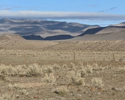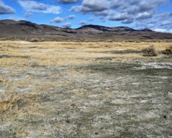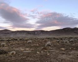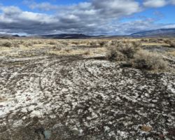 Completely out in the open, nary a shrub or sage bush higher than a knee cap, out on a massive broad slope, we had climbed again in elevation and almost got us tucked up against the low hills behind us. We had unbroken views all the way back to Mudd Meadows, Soldier Meadows, and the mountains bordering the playa. There was plenty of open space as the vegetation was pretty thin. BLM had done a great job of outlining roads, trails, and sites with small rocks, and while I was ready to jump into the first site, which turned out not even to be a site, just the info center, we jumped into the next one, not a sole in sight, no evidence of humans other than what could have been from years and years ago. We had found our place.