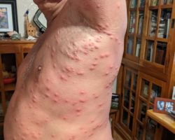 Once we got onto 80 and through Reno, traffic opened up and we made a pit stop in Truckee for gas. From then on home, it was smooth sailing. It was a little later and a little darker by the time we got into town, but not bad. It only took a few minutes to unload Ken and I was home moments later. I was pretty thrashed from the drive and getting itchier by the minute. K was kind of rubbing my back and I mentioned I felt like I had a few bites that were itching more and more. Taking off my shirt revealed hundreds of bites all over my torso, front, back, and especially around my arm pits. My legs were unscathed, but by the minute, my discomfort was skyrocketing.