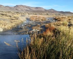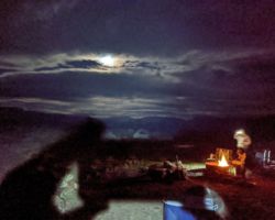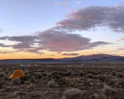 At some point after dinner, Billy wandered down to the hot springs. We hooted and hollered from camp every once in a while to make sure we got a response. Eventually we headed down to see where he was and he had found another pool, a little lower down the hot creek. He was in his glory. We headed back to camp and Kenny crashed before too long. Bobby and I hung around the fire until Billy returned when we all retired to our separate individual tents. Sleep was rare and infrequent.
