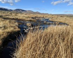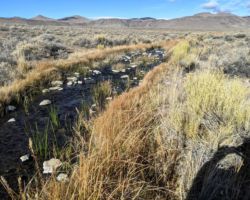 The sign indicated we were within a mile or so of 3 different camping areas. It also indicated that on top of the rather massive and irregularly shaped piece of private land belonging to Soldier Meadows, we also were now in a BLM designated Area of Critical Environmental Concern (ACEC) within which, BLM wants you only to have fires in the designated camp spots. On the one hand, we are out in the middle of nowhere, in the off season, so really? I have to assume enforcement is rare. On the other, I hate the feeling of being concerned that every vehicle we see or hear may be BLM and getting rousted, having to move, paying a fine, etc. We travel all this distance to get away from people and these sorts of issues, not to worry about breaking the law. The sign also indicated a significant number of springs.