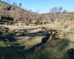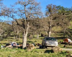 Walker Ridge is just a few miles past 20 so we were on the dirt road keeping our eyes peeled for wildflowers and decent tracks that could lead to a camp spot. The road was in pretty decent condition, but we didn’t pass a single vehicle until we got to the turnoff for Blue Oak campground. Again, having been stumped to find a suitable camp spot on the ridge, we descended into the canyon, dropping precipitously down the steep grade into the flooded valley of Stanton and North Cache Creeks. Another expensive, failed attempt to regulate water flow in the arid West.