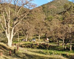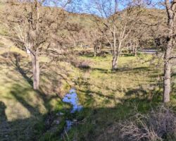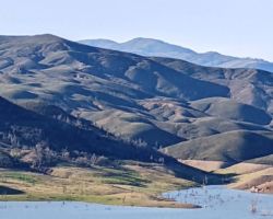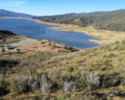 In no time, was came to the gate that brought back many memories from previous trips. We had come down here last trip with Bill, Steve, Ken, and Bob and had walked on down to the lake and explored all around the dam and the shore and the closed campground. This time, we just went up the road a bit to an overlook and hardly noticed the new SpaceForce launch facility that you can’t take pictures of. I recalled numerous trips camping on the North end of the reservoir with Mike, Jordan, and Kristen and drives in to Bear Valley to see the wildflowers.