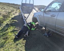 Just then, Ken got a call for a AAA guy in Redding, which seemed ridiculous to both of us. He said he could be there in a couple hours, which still didn’t make sense to me. I was telling Ken to tell him we must be able to get someone local when he finally explained he was out of Sacramento but on his way home from delivering a vehicle to Redding. Now, this was sounding better. Ken thought he sounded legit and he was still the only guy that said he would come out to us, knew where we were, wasn’t concerned about the dirt road, had the right rig, etc.