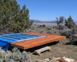 As I get to the property each time, I still can’t help but search intently for signs of bad guys. Obviously I look closely to see if all the fencing is still in place. However, the heavy brush on one side of the fence where they cut through previously, and the boulders lined up on the other give us extra confidence that at least the most vulnerable spot is well defended now. Higher up the road near camp, my first indicator is the little cabinet behind the shitter. If that door is open, the bad guys have been here. My second key is the shitter door. The bad guys seem to need a lot of toilet paper and have helped themselves to ours. So far so good. Ultimately up top, everything looked like it should. Nothing out of place, nothing broken, graffitied, burned, or otherwise wrecked. We seemed to be in good shape; no moleste! What a relief. This was by far the longest period we had been away from the property (November 13- April 5). I think even if we made it up last trip in March, that still would have been the longest time, but no matter, all was good.