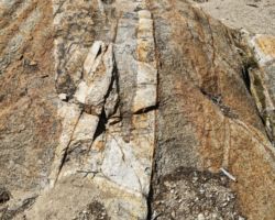 Bob and I wanted to explore up higher a little more to see if the road possibly continued on up and over the pass to the North, so we headed on up what may have been a trail, but soon petered out into perhaps seasonal creek or game trail. We picked and prodded under fallen trees and scrambled over boulders, climbing higher as we went. We stumbled into what appeared to be a rock outline for a cabin foundation or the perimeter of an old garden or sitting area. We soon found 2 areas where massive numbers of canned food and goods had been deposited. This definitely had been someone’s camp a long time ago. That was about the end of the line. If there was a path or route up and over the pass, we weren’t on it, and had been gone long enough. I had assumed Bill and Tom had headed on down from the mine ahead of us, but as we approached the first big rock face, here they sat. Reunited, we began the descent back to camp, getting another perspective on all the wonderful rock formations.
