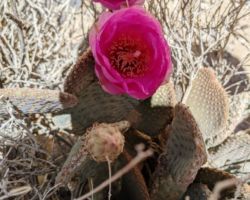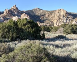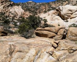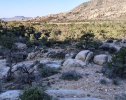 Nonetheless, prior to coming to those tracks, we came to another road without such signage so we decided to head up it and explore. It obviously had been used quite extensively as the road in was good and several spots had been trampled and cleared from use. We poked around here and there and finally settled in the shade of a massive boulder pile for some R and R. We were marveling at the great number of plant and brush species there were right in this little area, even though, at first glance, there wasn’t much growing at all. I should have pushed on and checked out those other roads as coming back is less and less likely. However, we again ran out of time and motivation and just headed back to camp.