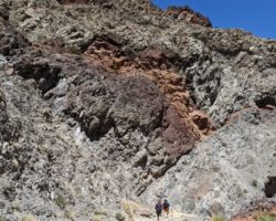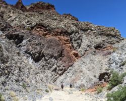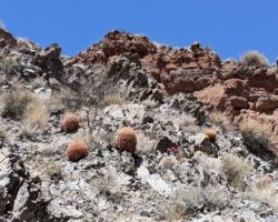 Needless to say, sleep was rare, although I felt pretty good when I awoke. This despite, not only the wind, but my air pad going flat and not being able to sleep on my side. The morning was breezy, but the tremendous blasts were non-existent. The forecast had predicted up to 70 MPH gusts for the Eastern Mojave. I don’t know if they were that strong, but they were easily the strongest and most sustained gusts I had ever camped in. We all were in pretty good shape and soon got to planning our day and consuming coffee and breakfast. It was an easy decision to stay close to camp and not get back in the rigs so we decided to hike up the canyon to a mine that Bob and Marya had hiked to when they were here last.
