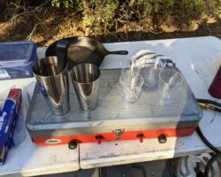 Back at camp, Tommy pulled out a jug of Manhattans and began prepping some steak and asparagus. This was to be Tommy’s last night with us as he was heading back to Sac a day early to help Jean prepare for his 60th birthday party that was planned 2 years ago. Not wanting his ex to do all this work for him and he just rolling in the night before the party, he was heading back to help out and give her some much needed assistance. The evening breeze was still with us, but had become more of a welcome friend than raging drunk. The temps were great and we had a delicious meal. After hanging a bit with Tom, I was off to bed and sleep came swiftly after such a massive day.