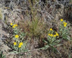 I believe Mike brought up marinated chicken to BBQ. I may have brought our first yellow squash and a couple peppers from our garden. I recall taking an evening walk down to the cemetery and then on down the road to the SE corner of the property. Then we walked out to South Grasshopper and back up to the main gate. We saw tons of wildflowers and stopped to look at many of the different species. We stopped at a giant circumference Juniper that had its top blown out so that it was very short. Like a giant cotton candy.