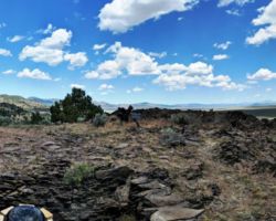 We were both up pretty early and had coffee and breakfast on the Western Addition. Mike and I both packed up and organized our gear. Mike swiffered the trailer and noted how much dirt came off the floors. He loaded his rig while I gathered some materials to mark the NW corner and the Western midpoint depending on what I found out in the field at the existing markers. Mike followed me down the hill and I hopped in his car to show him the NE corner marker, which is clearly marked alongside Termo-Grasshopper road, so we headed back to South Grasshopper, and out task at hand. I found the NW marker in my binoculars before heading out and just went out with wire, snips, and a can of yellow paint to find the marker.