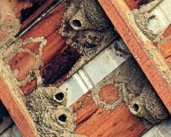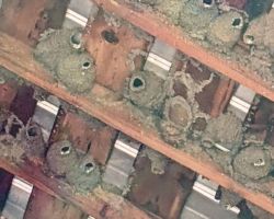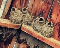 On one of the dozens of treks back and forth inside and out of the barn, a huge thud and cloud of dust rose up right in front of me. I immediately stopped walking and stood still trying to figure out what had just happened. It took me a minute to gather my thoughts and for the dust to settle, when I realized one of the swallow nests had let go of the roof and come down at my feet. The impact was substantial, and although nothing but dust remained, I realized that the mud nests are probably more substantial than they appear from down below. It was a trip to be here when that happened and also very fortunate I had not taken another step, as I was already as dusty as I cared to be.