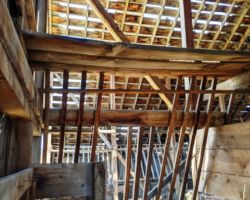 Bob had been in touch with Ritchie on an doff and had set this day up as the time for us to go a gatherin. These were probably the closest old wooden barns to the property and they just happened to have about 120’ of 1x10x8 pine boards inside protected from the elements that was exactly what Bob had wanted. We met Ritchie at the barns. He was in full cowpoke regalia, with hat, plaid short, furry vest, jeans, chaps, boots, and a big wide leather belt and buckle. He had his horse in the trailer and was going to be riding across 139 up in the hills all day. He turned us loose in the barn and went on about his business. I did take the occasion to ask him about Fence Dale and after a bit he said he knew of him, which I was glad to make the contact.