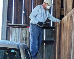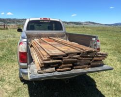 As we pulled up to the barn, we were greeted by the hundreds of swallows Ritchie had warned us about. I was glad to have my hat. After surveying our booty, it was better than expected, and Bob was super excited to get it into his possession. He quickly realized he forgot a ladder so we had to improvise by pulling the rigs up alongside the siding so he could pull the top nails while I pulled the middle nails. We gave thanks many times that whoever put these up, used a minimum amount of nails, although they were easily the biggest “nails” I had ever seen and bordered on the spike size. Once the top and middle nails were pulled, I would pry them from the framing and work the bottom nails out and bring them to the tailgate where Bob would pull any remaining nails from the boards and stack them in the bed. We raged.