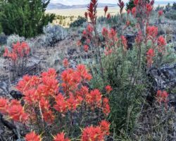 I hadn’t gone too far off the top of the hill before I made a wonderful discovery. I saw my first red wildflowers. We have tome of yellow, some white, purple, but I had yet to see any red.