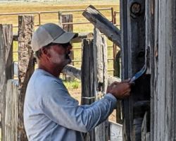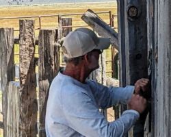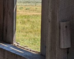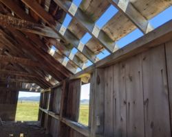 At one point, Bob noticed an antelope about 100’ away by a gate. As he stepped away from the gate, we saw it was a coyote. We watched each other for a bit and got back to work. The next time we looked up, he was only about 50’ away, out in the open, and seemingly wanting to come closer. He looked good, small, perhaps young, but not at all scared and very interested in what we were up to (or maybe it was Bob’s sammich). We took a little break after we had one side done, and then hit our groove and had the other side down in no time. The quality of the wood, the ease at which they came off, the lush green grass all around, the copious amount of water in the meadow, and all this history; it was extraordinary.