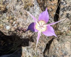 Heading up the East side, I noticed another wildflower I had not seen before. It was a single stock, not leaves, about a foot tall with a Trillium like flower. I think it may be a Lilly, all in 3’s; 3 flower petals, 3 small leaflets, purple with some yellow interior. It was another great gift from the Hill. It wasn’t much further up the slope before I made out the outhouse roof, and I was back. I felt like I was in an entirely different space this whole walk. It is so cool the property is big enough to really feel in a different place when you are on opposite sides of it. I barely got a beverage and a sammich when I heard a rig pulling up top. Bob had arrived