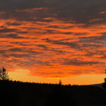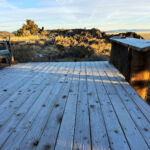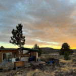 So, with no shower to take, and not being very hungry, and the cold setting in, a beverage was in order and a fire was needed. I had a couple cocktails in the fire corral and as I was sitting there in the dark, a skunk waddled right past me and under the stairs to the deck. Maybe he has rousted all the pack rats. After a bit, I then retired to the cabin, talked to K, added a blanket to my bed and dissolved into an incredible sleep. The sky again was super clear and the stars alive with twinkle and light. I alternated between hot and cold and didn’t like the heaviness of all the blankets, but I was in bed a long time. It was really cold when I got up and went right for the coffee and many layers of clothes, hats, and gloves. I was happy I was done with the watering and wouldn’t need to deal with that again. I had my first cup on the upper terrace in the sun and my second cup over on the bench. My third cup was on the go.