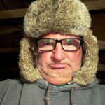The wind stopped as suddenly as it started and it was near total calm at 6:30. I again was plenty full from lunch so I drank my calories, had a little fire in the corral. I was early to bed, but not early to rise. The overnight low was 24 and the cabin felt like a meat locker. Knowing I eventually had to get up, I covered myself in many layers of clothing, my super warm hat with lowered ear flaps, and my gloves and ventured outside. Everything was white with frost. The tiny flecks of frozen crystals sparkled in the low sunlight. It really was beautiful…and cold. I again had my first cup up on the upper terrace but I had to sit on the ground as all the chairs were frosted.