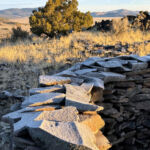 I had texted Diego on the way up and reached out to him again without a response. I figured he might be working up in Ash Valley or out of cell range somewhere so didn’t sweat the lack of response. I rambled down the hill to water around the cemetery and admire our new holes that Kelly dug for us. I put the healing bark protection paste on 5 trees and wrapped them with the gauze. I had 2 wire cages so made a note to bring three more down. We may have lost 1 or 2 more trees, but it is tough to tell at this point in the year. I can’t remember the name of 1 of the 3 trees species we planted around the cemetery, but they are the one’s having the bark eaten the most.